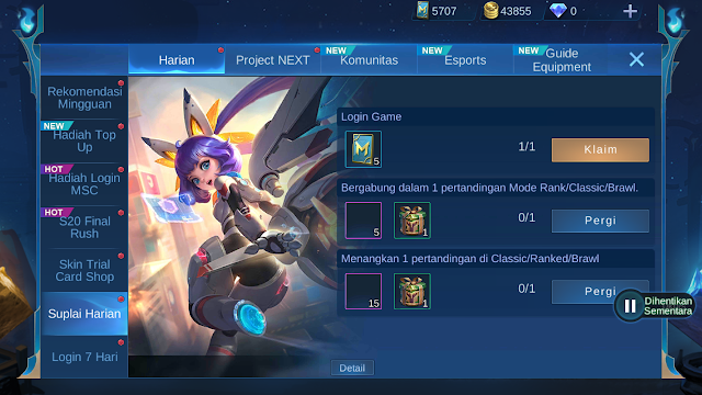 ketika season telah berganti biasanya moonton akan memberikan give berupa skin grastis permanen, tambahan battle poin dan tiket secara gratis kepada pengguna mobile legends. Hadiah tersebut bisa kalian klaim di menu pesan.