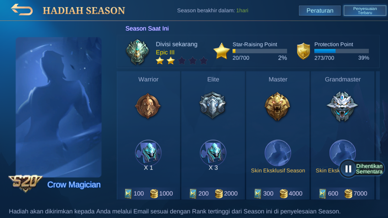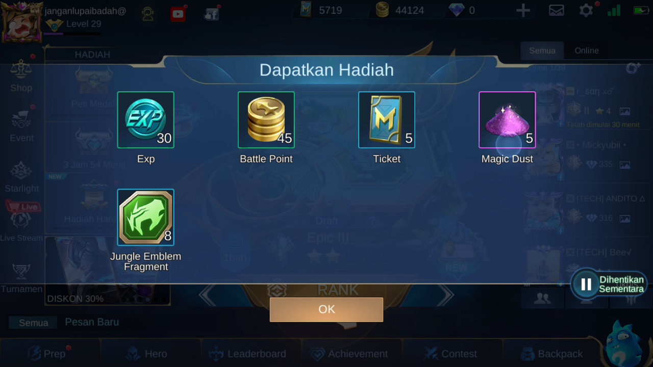 ketika season telah berganti biasanya moonton akan memberikan give berupa skin grastis permanen, tambahan battle poin dan tiket secara gratis kepada pengguna mobile legends. Hadiah tersebut bisa kalian klaim di menu pesan.