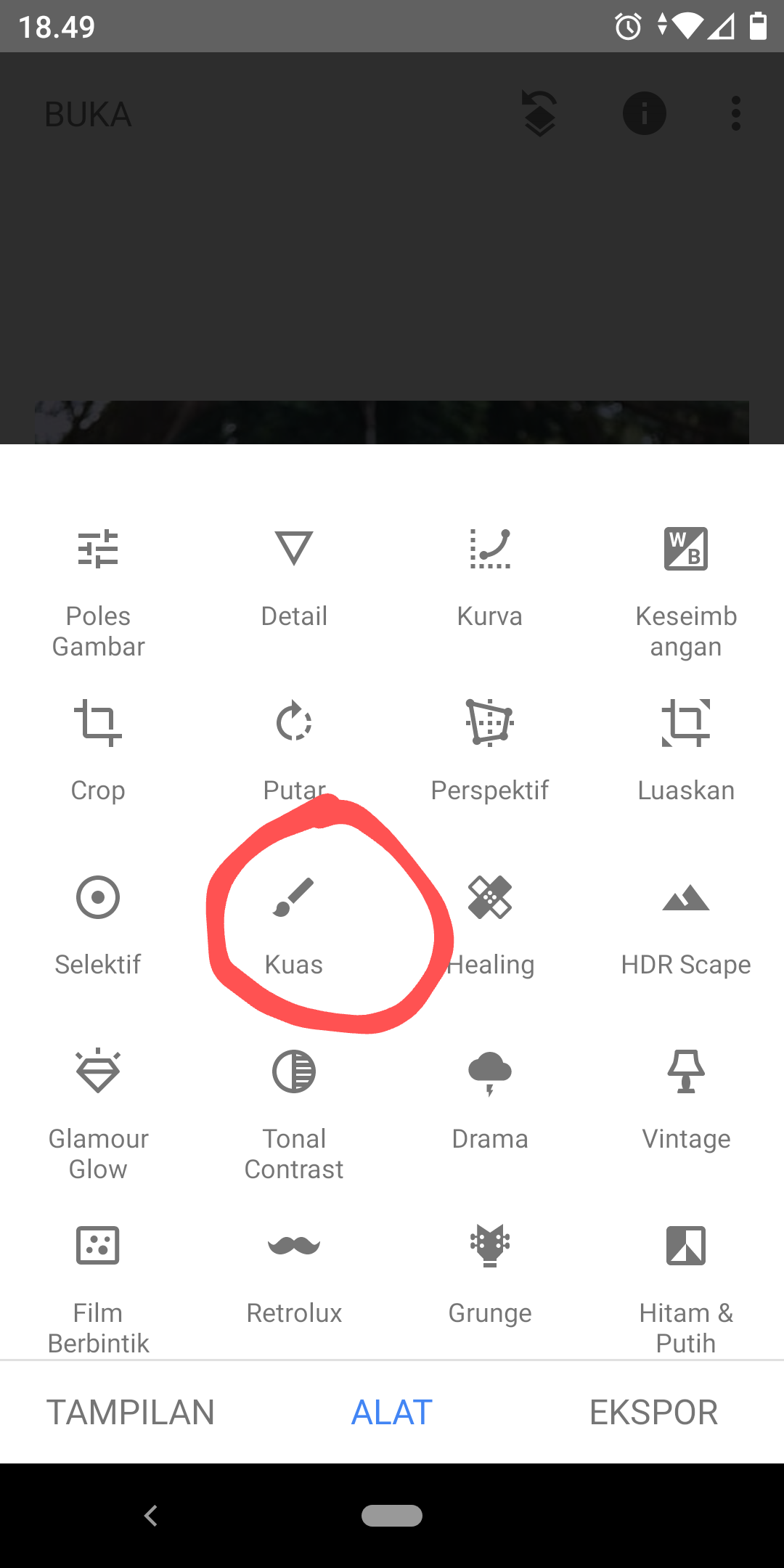 2. Langkah kedua kalian pilih bagian alat lalu pilih tombol kuas seperti gambar dibawah.