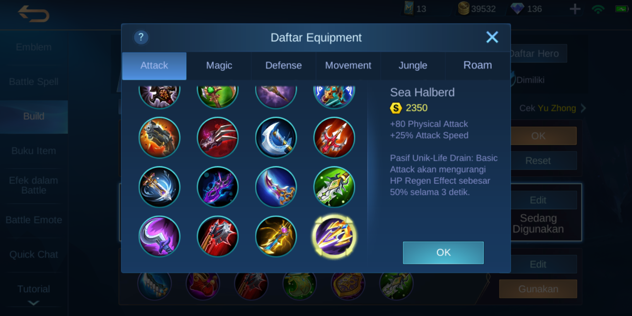 Jangan lupa untuk menggunakan item necklace of durence jika kita menggunakan mage, sedangkan saat kita menggunakan hero dengan basic physical damage maka kita harusmenggunakan sea halberd.